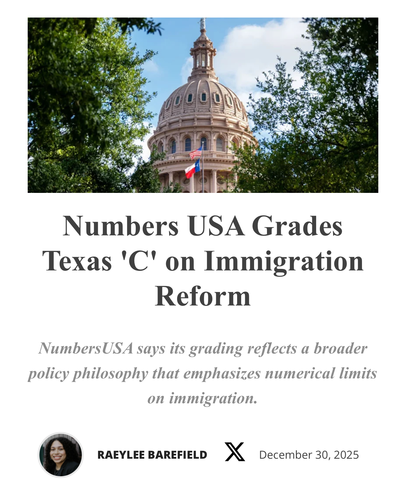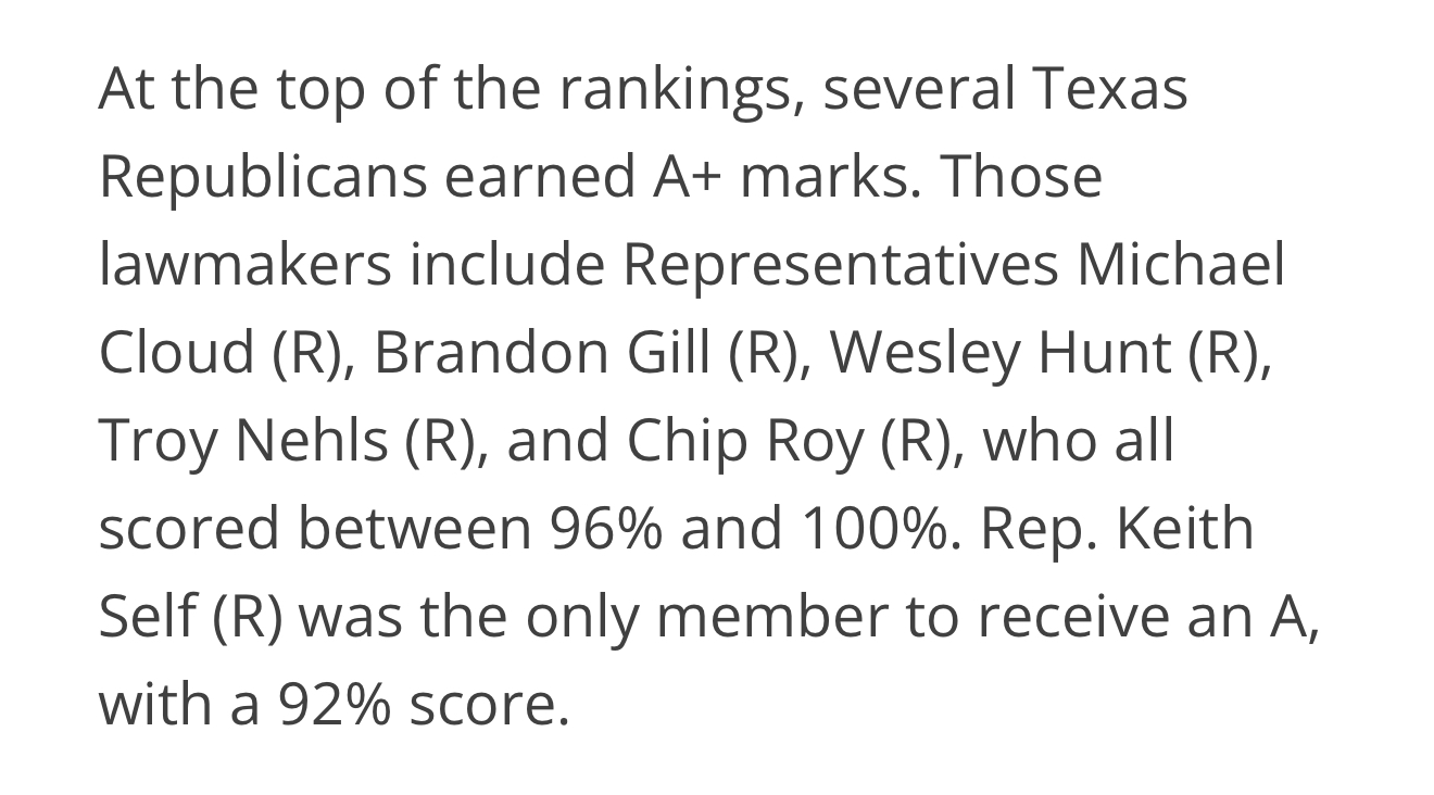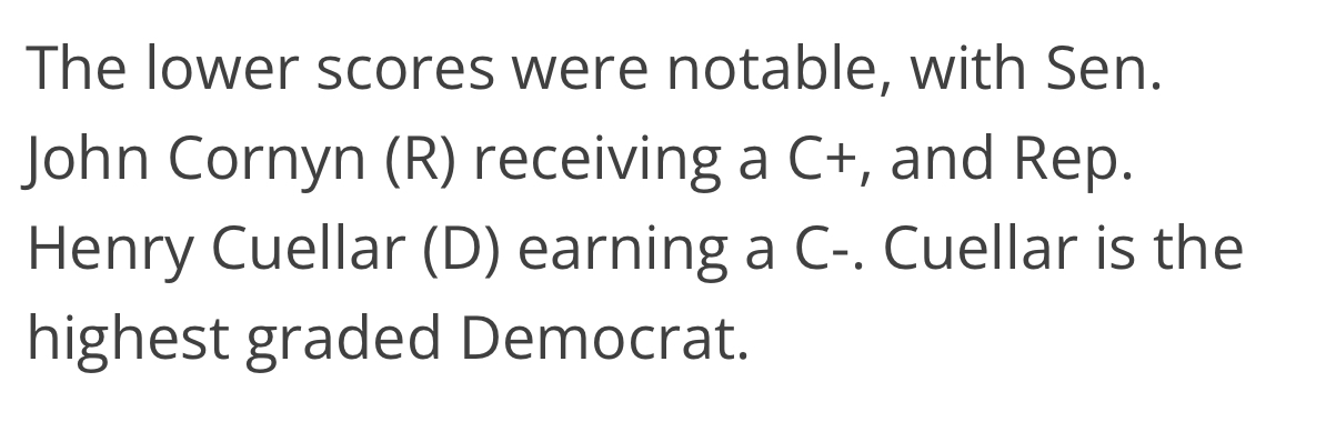 Houston, TX – According to the Texas Politics Immigration Report Card, Wesley Hunt is among the strongest supporters of immigration enforcement and reform, while John Cornyn is graded notably low—right alongside his Democratic colleagues.![]() Texas Politics Immigration Report Card Among the highest-ranking members, Texas lawmaker Wesley Hunt has earned an A+ and has been a staunch advocate for stronger immigration laws and the protection of American sovereignty. Wesley Hunt has never wavered or compromised on his America First stance. ![]() John Cornyn, on the other hand, scored significantly lower than what one would expect from a true patriot of the America First movement. ![]() Receiving a C+ on his immigration report card does not align with the many ads he has been running statewide, which claim he votes with Trump 99% of the time or that he played a key role in ensuring the continued construction of the border wall. Cornyn’s poor immigration score is the result of years spent placing illegal immigrants above Americans. Since taking office in 2003, John Cornyn has advocated for free benefits and education for illegal immigrants, expedited SIV visas for Afghan nationals, and supported several other pro-illegal-immigration bills. Altogether, John Cornyn has voted for mass amnesty for illegal aliens 11 times. John Cornyn is not the America First patriot he claims to be, and his record on immigration proves it. Contact: James Kyrkanides, Lillian Hale Email: James@wesleyfortexas.com, Lillian@wesleyfortexas.com ### |