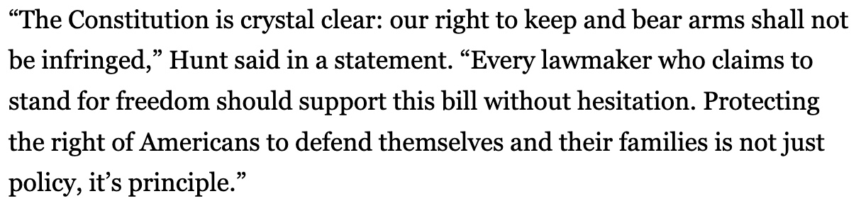 Houston, Texas- The Dallas Morning News and the Houston Chronicle released articles highlighting Wesley Hunt’s Second Amendment Restoration Act of 2025. ![]() View Dallas Morning News Article In 2022, John Cornyn teamed up with Democrat Colin Allred to push a bill to President Biden’s desk that trampled on Americans’ right to bear arms. After a congratulatory pat on the back in the Rose Garden, Cornyn stood by the legislation while thousands of Texans felt the fallout. Bottom line: Cornyn doesn’t fight for Texas in D.C.—he plays by the establishment’s rules and curries favor with whoever’s in power. In this case, he sided with Democrats and sold out Texans. ![]() View Houston Chronicle Article Contact: James Kyrkanides, Lillian Hale Email: James@wesleyfortexas.com, Lillian@wesleyfortexas.com ### |